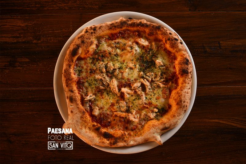 Baked chicken, provolone DOP, fried onion, oregano.