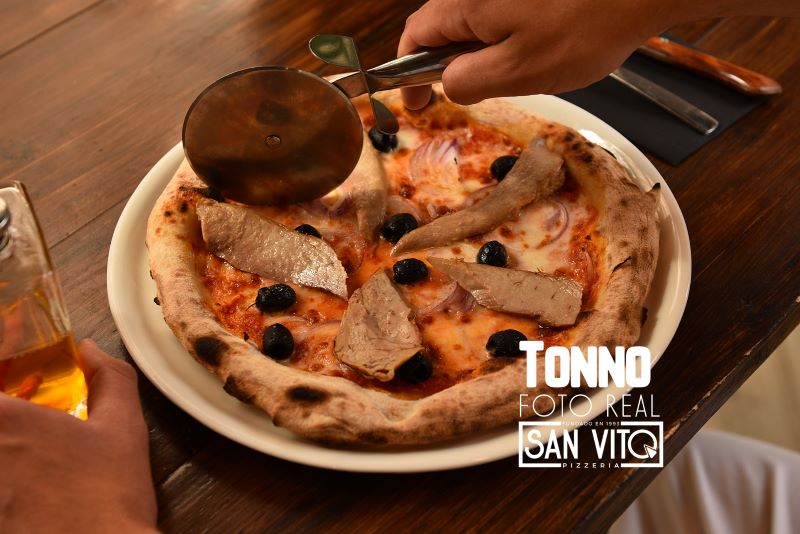 Ventresca de atún, cebolla roja y olivas.