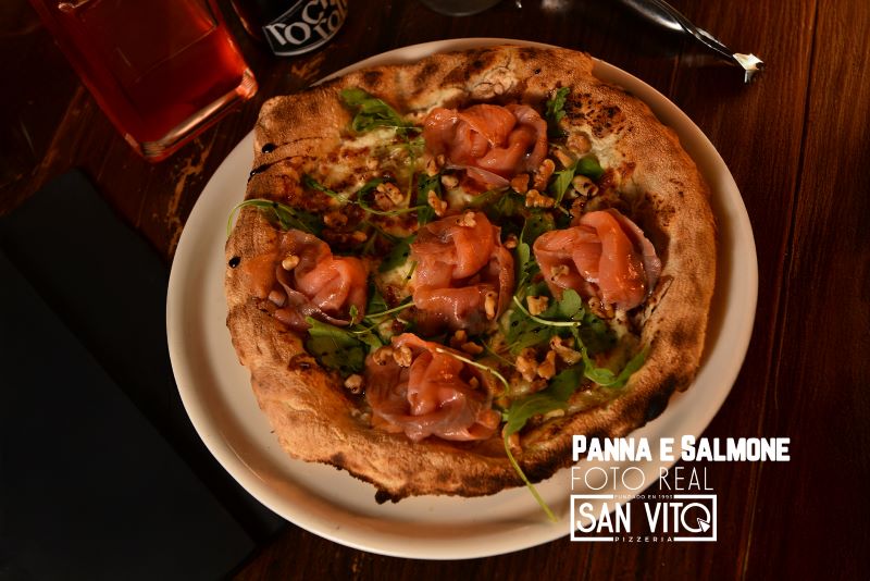 Ricotta, cream, taleggio DOP, salmon, arugula, balsamic cream and walnuts.
