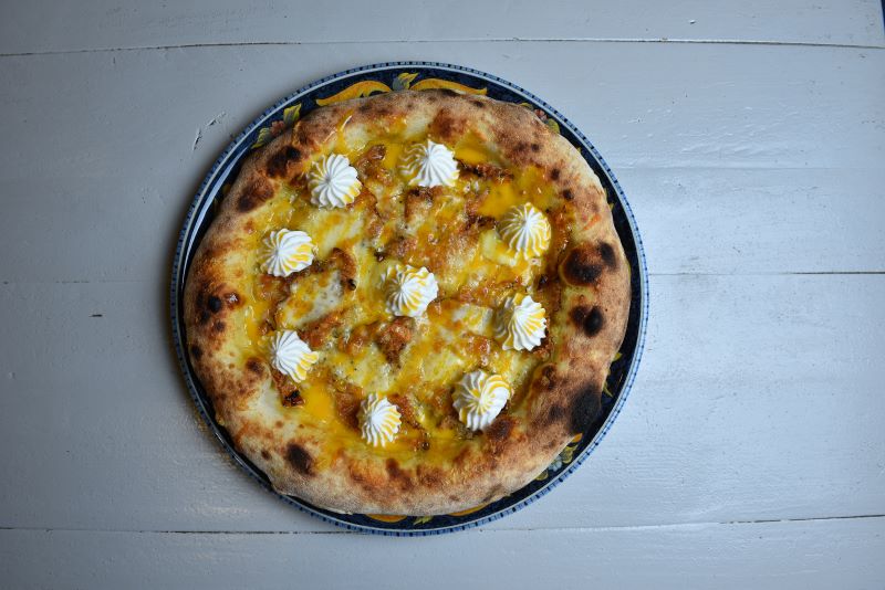 Pumpkin cream, fior di latte, mushrooms, sausage, coppa nostrana and buffalo burrata.