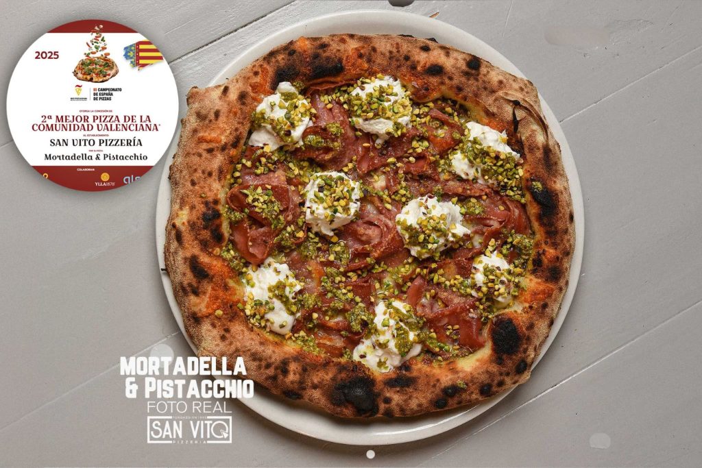 Pistachio pesto, fior di latte, goat robiola, baked mortadella, buffalo burrata, grana padano DOP and